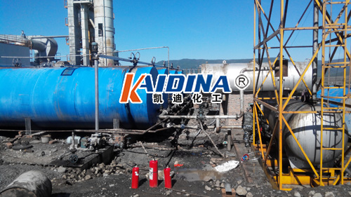 2014年6月,根據吉林省高等級公路公司的要求,山東凱迪化工清洗公司派員前往長春進行導熱油爐清洗工程。該導熱油加熱系統容油量約為8000kg(即8噸),所帶設備為瀝青保溫罐。由于導熱油系統使用時間已有幾年,油品劣化,部分傳導熱性變差,為避免影響到正常生產,需在不停車的情況下,通過清洗并更換新油的方式解決現有問題。根據當前油爐運行狀態,本系統導熱油運行狀態評價為一般,建議使用藥劑為水劑型KD-L312導熱油清洗劑產品,清洗工程持續時間為5天。